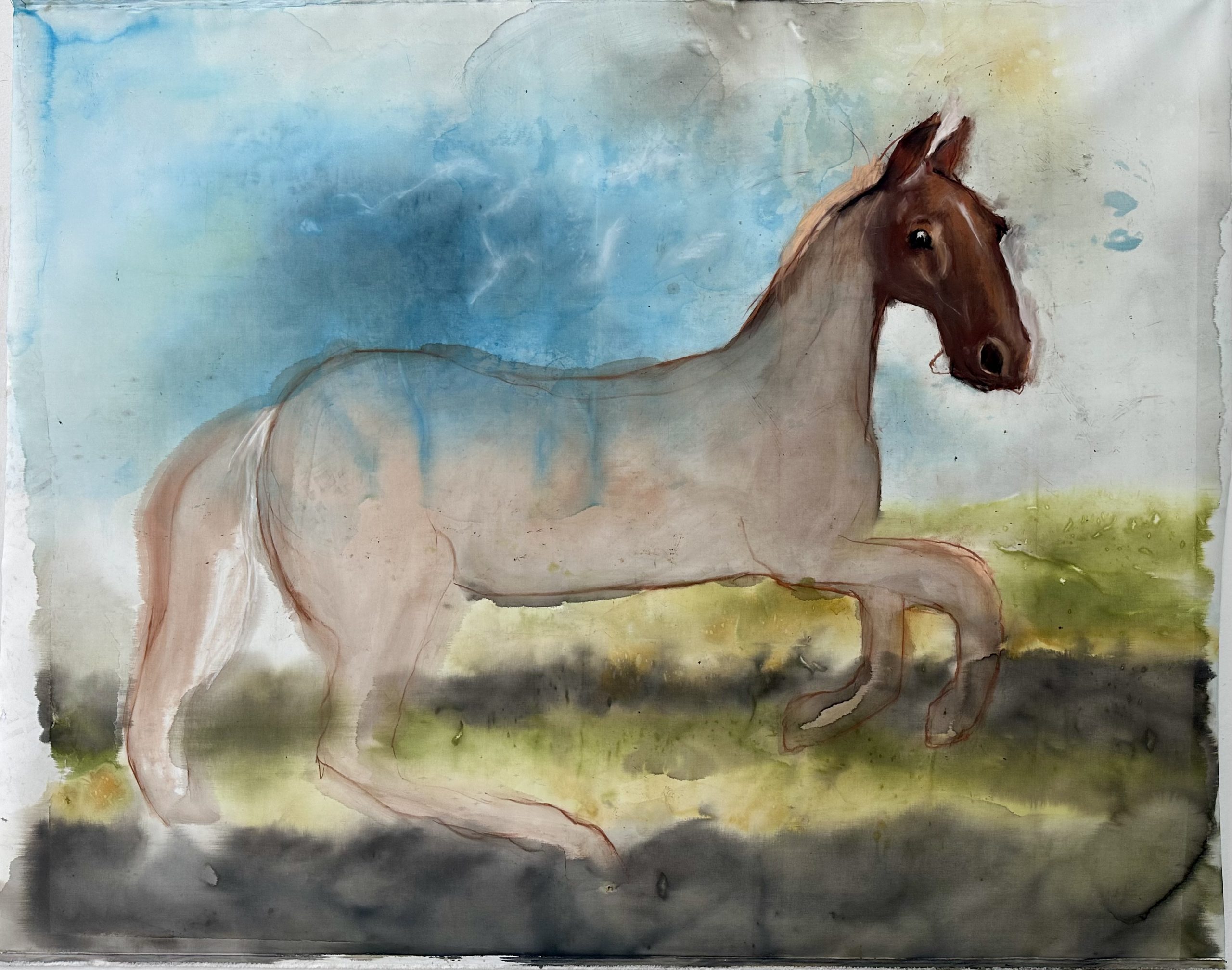 Next Previous Horse (after George Stubbs), Pastelchalk, Ink, Acryl on Polyester Fabric, 210x167cm by undine 8. October 2025 Painting