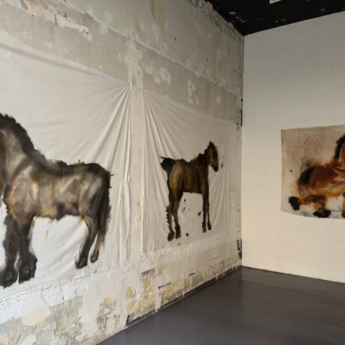 Horse (after George Stubbs), Pastelchalk, Ink, Acryl on Polyester Fabric, 210x167cm